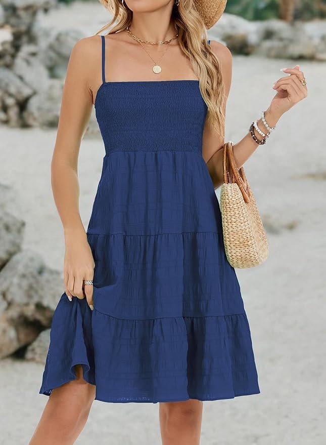 - Fabric: Women’s spaghetti strap smocked short summer casual sundress is crafted from lightweight, breathable materials, ideal for 2025 vacation beach resort wear. The soft fabric provides a comfortable fit, making it suitable for warm weather activities
